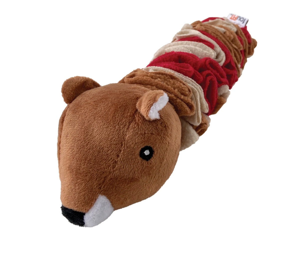 Our Hide 'n Seek Woodland Squirrel Snuffle Nosework Toy is perfect for keeping your dog occupied and engaged, while learning how to effectively use their nose and getting rewarded along the way! Hide treats within the fleece layers throughout the toy. Features a hidden squeaker. Helps to relieve separation anxiety and improves your dog's cognition. An interactive and fun toy!